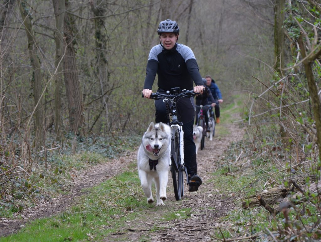 Neposredno pred štartom nas je pasji orkester, pod vplivom povišanega adrenalina, počastil z nam dobro znano in ljubo vokalno uverturo. Neprecenljivo je videti in slišati srečo, ki jo pričakovanje treninga vzbudi v naših pasjih prijateljih. Krožna trasa v dolžini cca. 7 km je bila speljana po gozdnih in poljskih poteh, prijetna in udobna za pasje tačke, psi pa so trening vzeli resneje kot vodniki. Tekmovalnost na progi je bila izjemna, kar je tudi od vodnikov terjalo večjo angažiranost pri pedaliranju. Na koncu pa vsi utrujeni in vsi srečni.