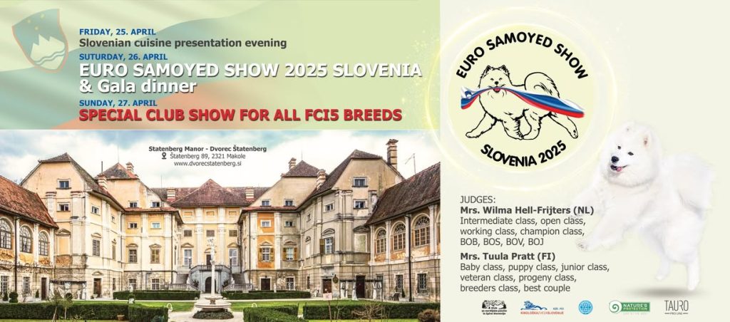 Vse informacije najdete tu: https://www.eurosamoyedshow.com/ FB stran: https://www.facebook.com/profile.php?id=61565420369498 Spletne prijave: https://www.entry.dog/competition/6e5d1959-b20e-4ead-9b05-d4a031673b68 Find all the information here: https://www.eurosamoyedshow.com/Facebook page: https://www.facebook.com/profile.php?id=61565420369498Online registrations: https://www.entry.dog/competition/6e5d1959-b20e-4ead-9b05-d4a031673b68